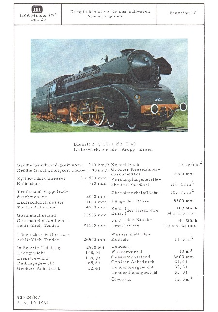 DV 930 37 Beschreibung der 2`C1`h3 Schnellzuglokomotive Betriebsgattung S 36.18 Reihe 03.10 der DR
