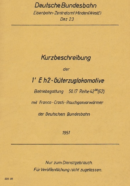 DV 930 86 Kurzbeschreibung der 1`Eh2-Güterzuglokomotive Betriebsgattung 56.17 Reihe 42.90 (52) mit Franco-Crosti-Rauchgasvorwärmer